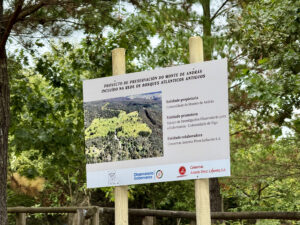 Se ha instalado el cartel identificando la colaboración entre Conservas Antonio Pérez Lafuente, la Universidade de Vigo y la Comunidad de Montes de András para preservar y estudiar un bosque de frondosas autóctonas de 16 hectáreas en la parroquia de András, Vilanova de Arousa.